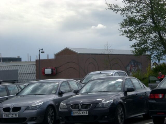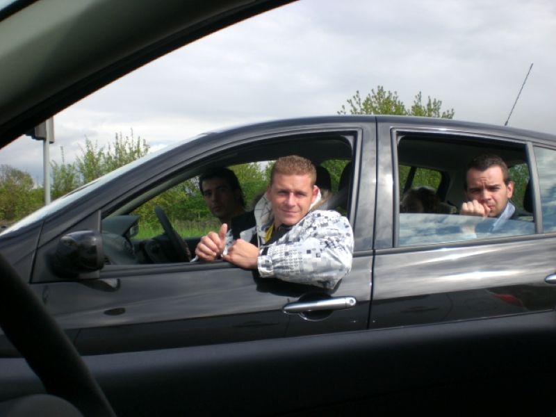 Llegamos a la enorme planta justo a la hora. El correo que nos mandaron decía que entrásemos por la GATE 7…y dado que la primera entrada que encontramos era la 5…pues me la pasé de largo (yo conducía el CLÍO gris plata y el negro lo llevaba TURCO, que iba detrás). Resultado: la siguiente puerta era la 4…luego la 3…vamos, un desastre. Creo que fué precisamente en la 3 en la que me metí (por la derecha, ole torero) y Ana (ha sido la pobre nuestra traductora OFICIAL) preguntó si íbamos bien para Albacete…