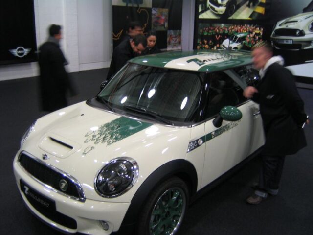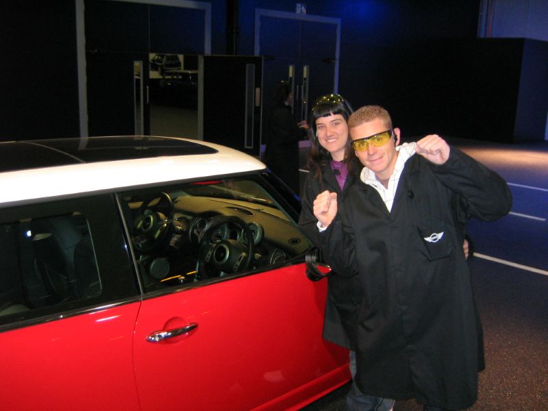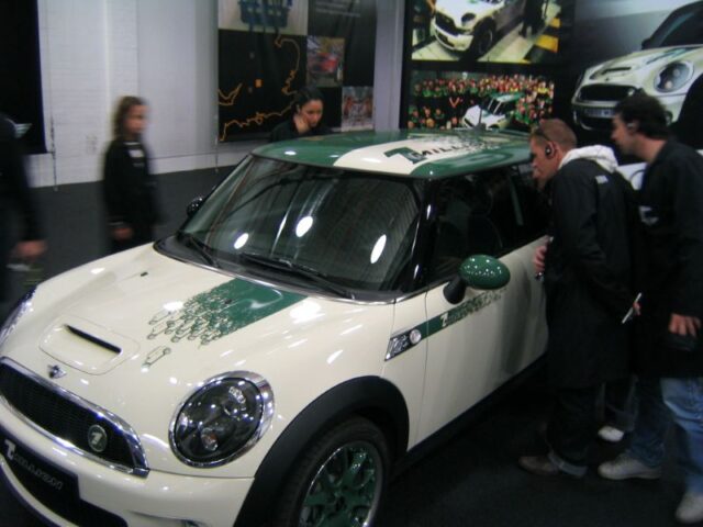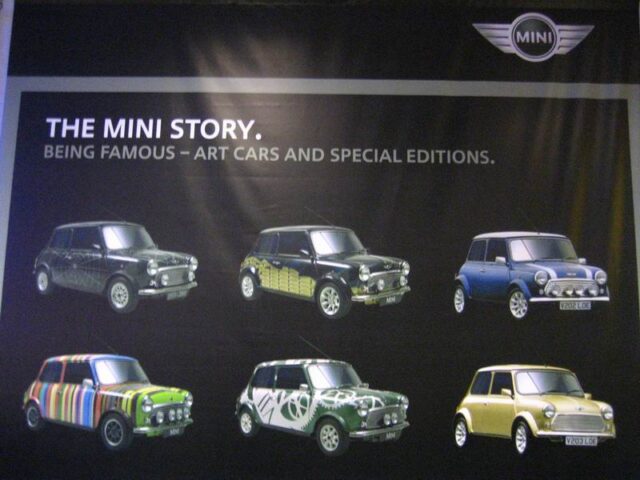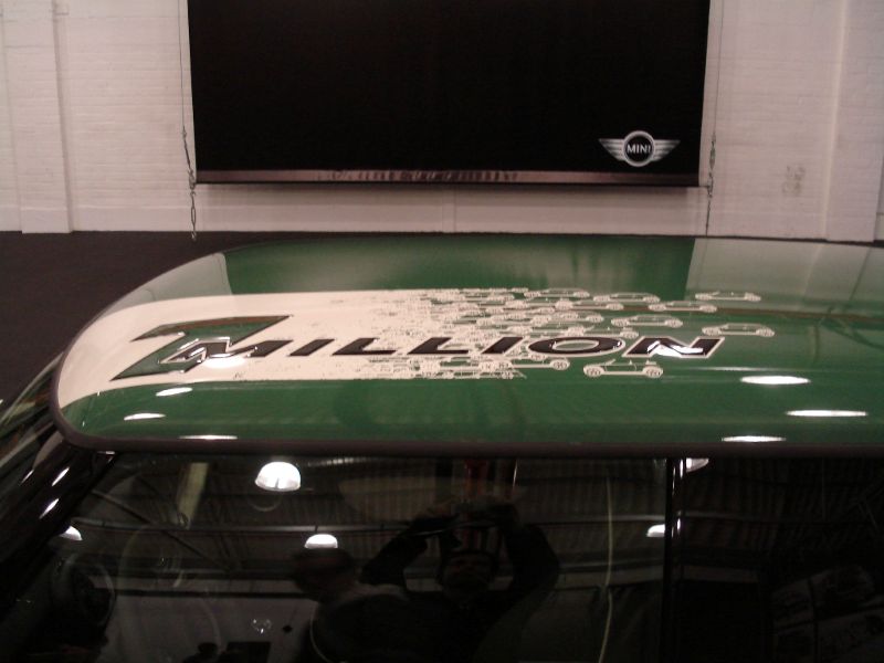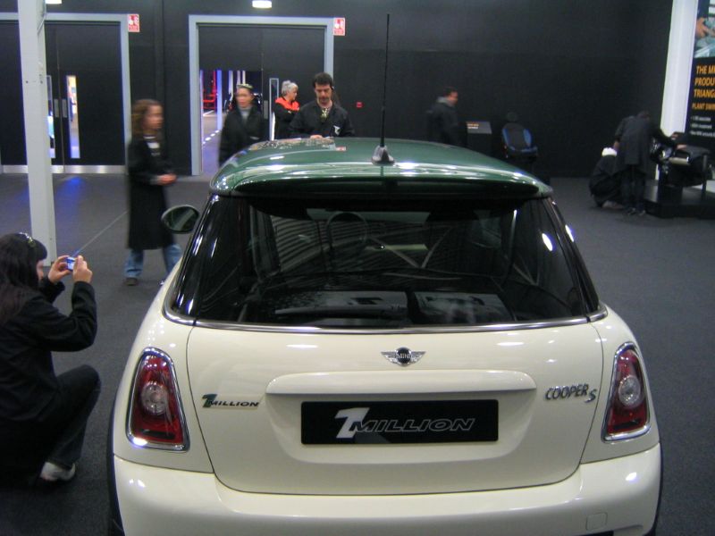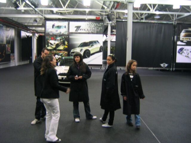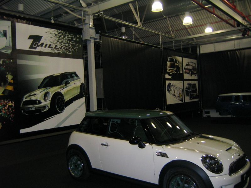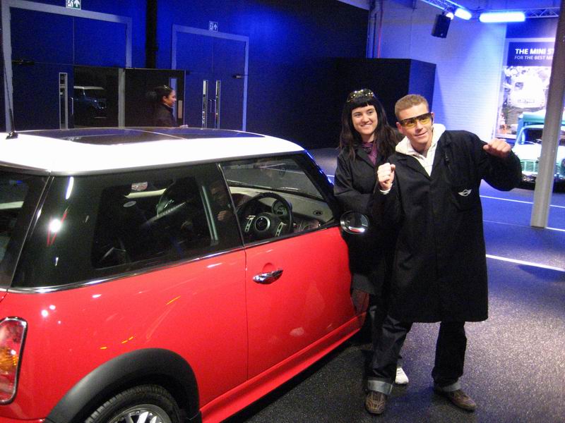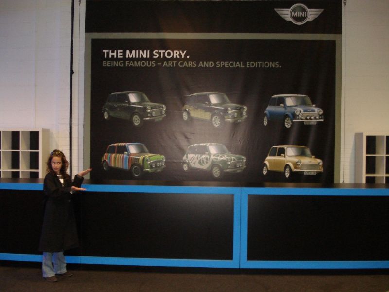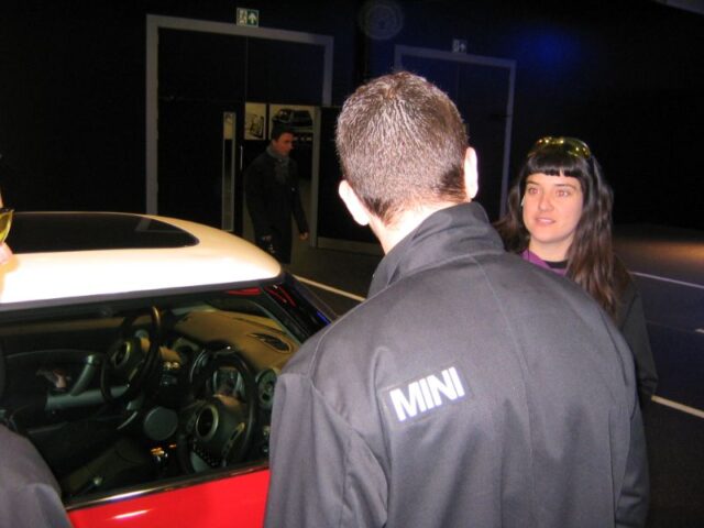 Nos dejaron un rato para fotografiar lo que tenían expuesto y nos advirtieron de que NADA DE MÓVILES NI CÁMARAS durante la visita. Vimos uno de los coches utilizados en Italian Job II, como ya ha dicho Boom, el MINI «un millón»…precioso…para babearlo constantemente…qué combinación más llamativa y que bien le quedaba. Y también había «viejas glorias» con las que casi me hago pis de gusto de ver lo nuevecitos que estaban. Que cosa más bonita.
