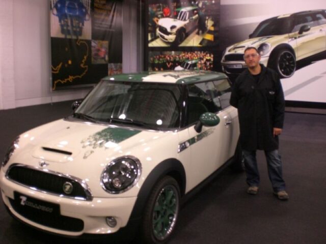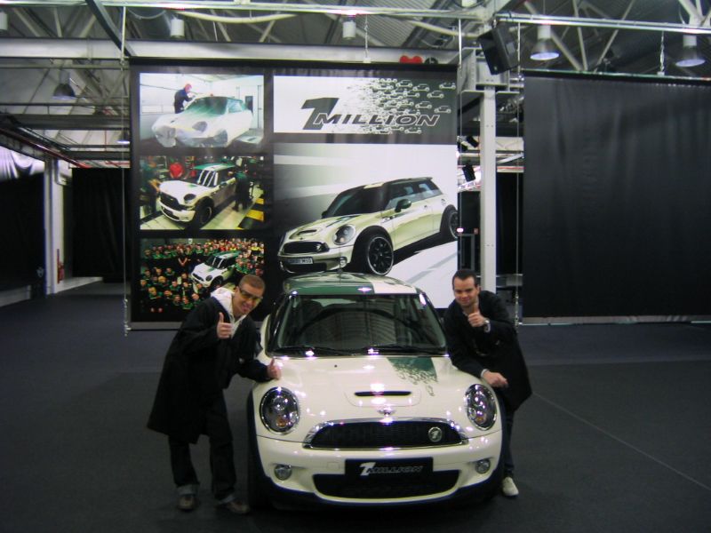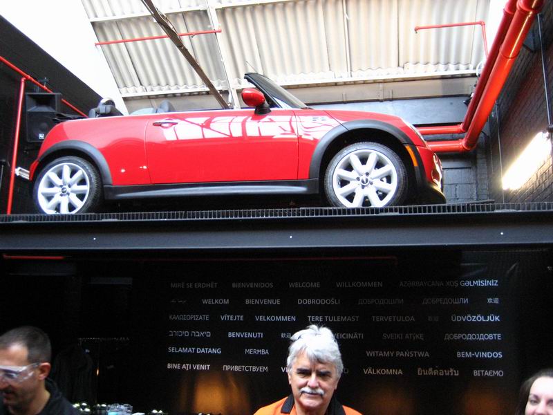 No recuerdo exactametne la cifra pero en el rato que estuvimos salieron de la cadena más de 20 coches John quiso buscarnos alguno que fuera para España, pero no pudo ser. Allí se fabrican los MINI en exclusiva para TODO EL MUNDO. Todos son distintos, se mezclan en la cadena final CLUBMAN, con R56, con cabrio…De verdad, es verlo para creerlo.
