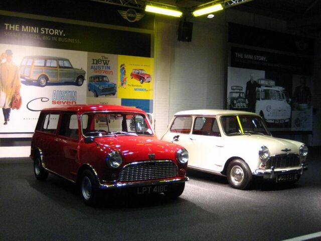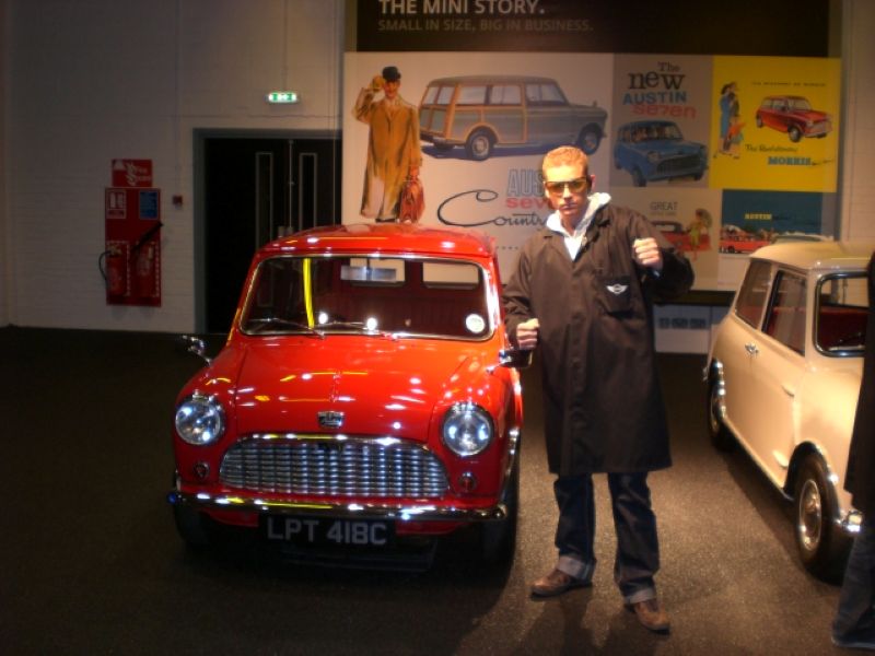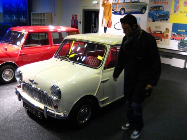 Marc81 sale en una foto con el «Countryman» de MORRIS (que no CLUBMAN) y con un AUSTIN. Nos contaron que la nave en la que estábamos fué en su día parte de la fábrica vieja y que estas preciosidades se habían quedado oxidadas por los bajos de la humedad que había. Los restauraron POR COMPLETO A NUEVO y con piezas originales, claro…Estaban como recién salidos de la línea de producción.