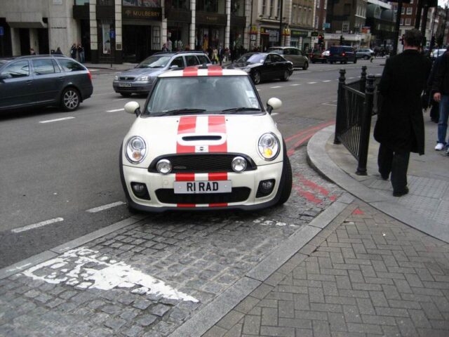 Una rotonda bajo puente. Giro a la derecha por la izquierda y de nuevo por donde habíamos venido al principio pero al revés. Menos mal que se podía girar a la derecha en cruce regulado por semaforos y giramos. Ahora sí, me metí «a saco» por la GATE 5 (y que le den a la 7) y nos plantamos en el arco con un MINI encima y un vigilante gordito que nos dió el alto y nos dijo que dieramos la vuelta, que era un poco más allá y que no sacasemos fotos.