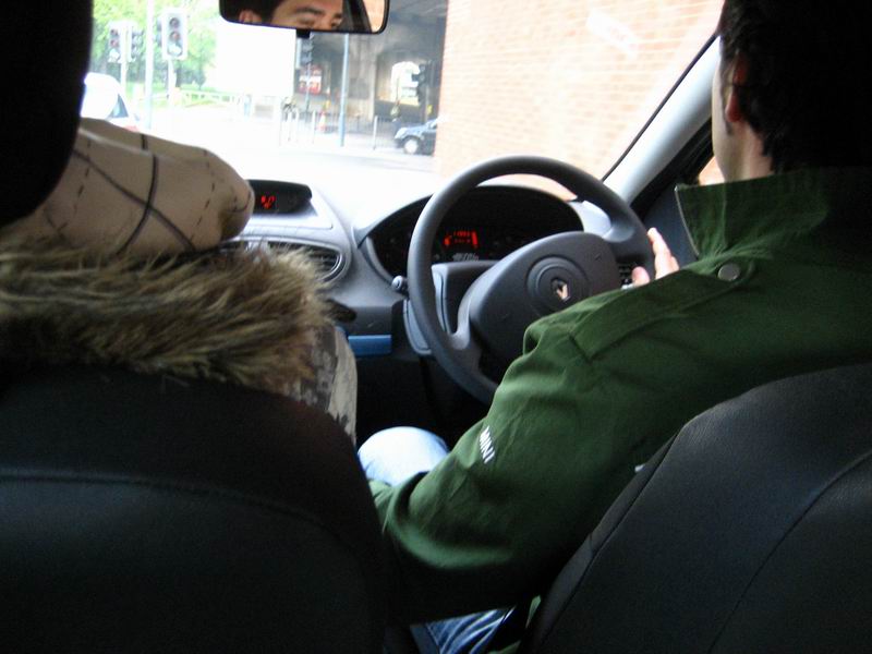 Salimos (esta vez por la izquierda, o sea, por donde habiamos entrado) y resulta que no había indicación de giro a la derecha…es más, lo que había era un carril de deceleración pintado y tenía todo una pinta en general de que lo que ibamos a hacer estaba prohibidísimo…pero bueno, era o salir, o perder la hora (ya ibamos tarde). Así que salimos y bien, nos dejaron hueco y todo, qué majos…