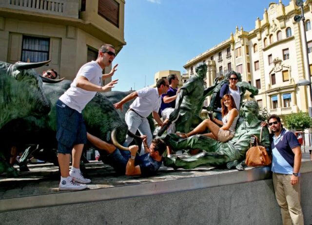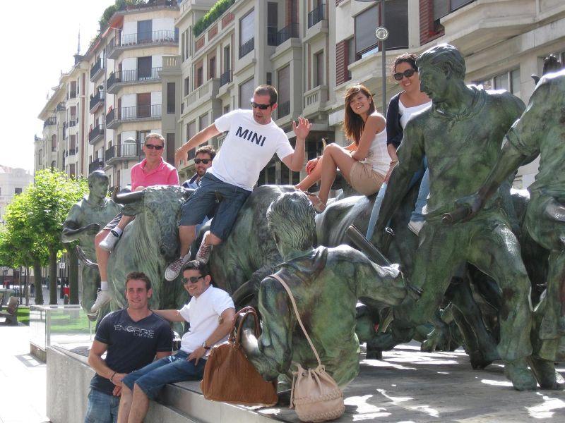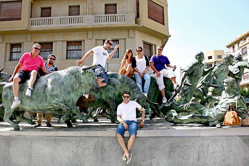 Aparcaremos los coches cerca del Río Arga, en el Parque de la Runa, para después subir caminando por todo el recorrido del encierro hasta la plaza de toros y monumento al encierro.