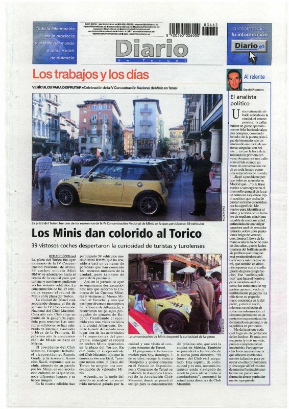 Después de comer, sobre las 15.30, salimos del restaurante en grupos ordenados de 10 coches para acceder al centro de la Ciudad, aparcando de manera ordenada y previamente diseñada en la plaza del TORICO, donde se intentó constatar el RECORD DE MINI’s en la Plaza del Torico, permaneciendo allí aparcados en exposición.