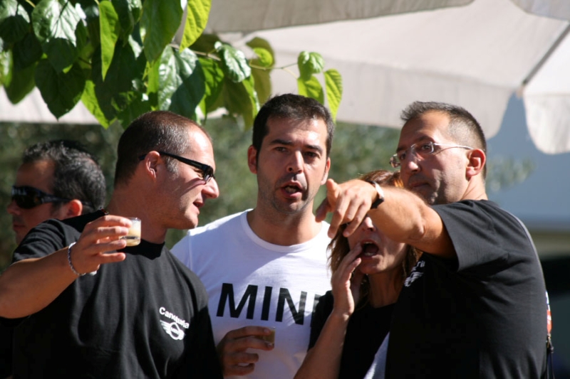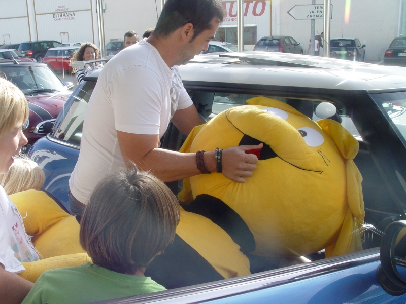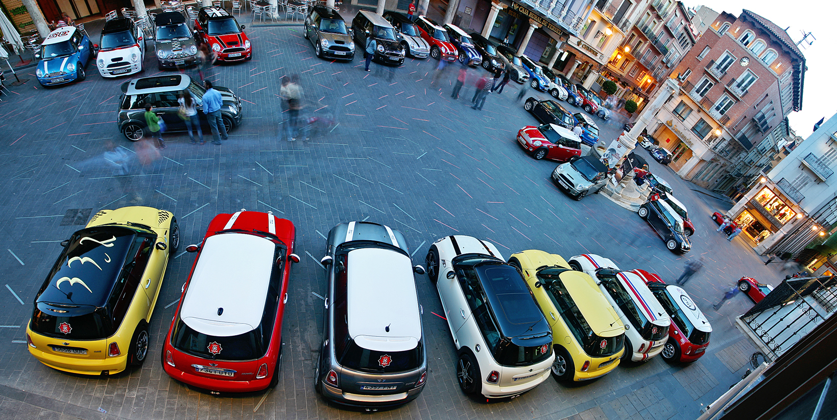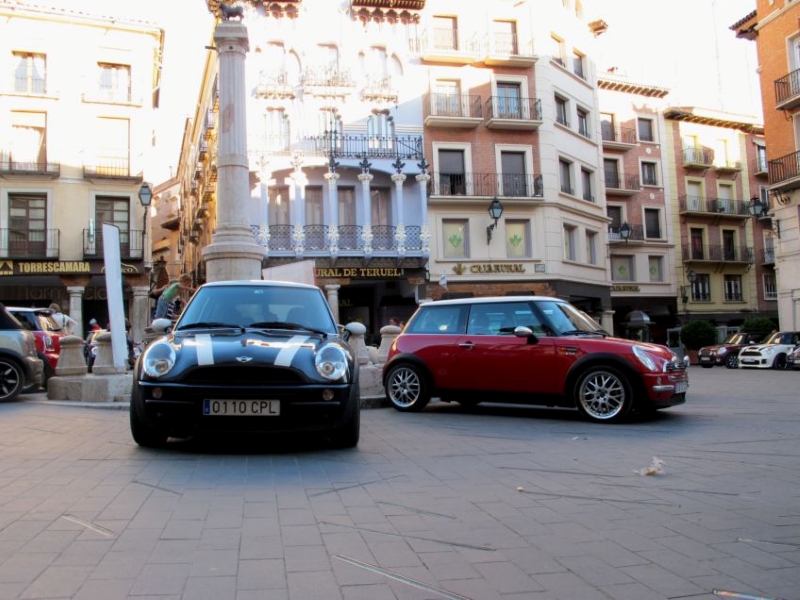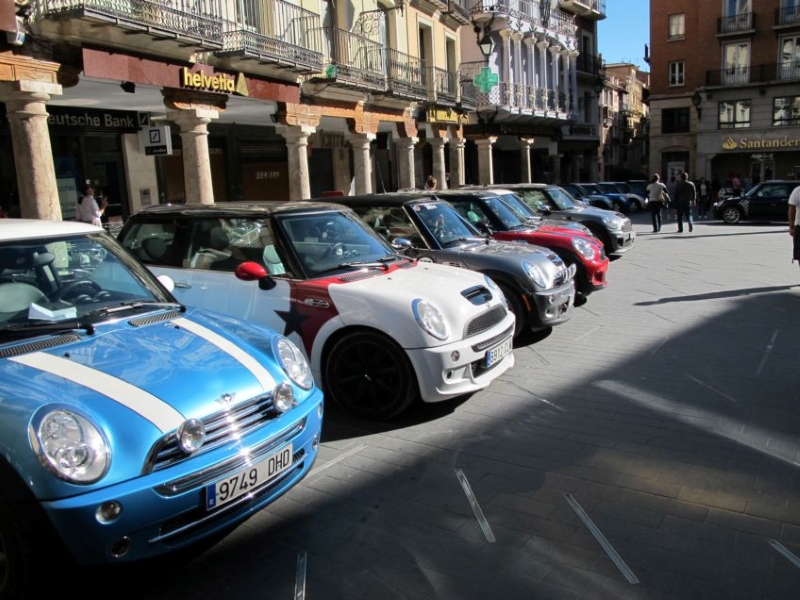 Después de comer, sobre las 15.30, salimos del restaurante en grupos ordenados de 10 coches para acceder al centro de la Ciudad, aparcando de manera ordenada y previamente diseñada en la plaza del TORICO, donde se intentó constatar el RECORD DE MINI’s en la Plaza del Torico, permaneciendo allí aparcados en exposición.