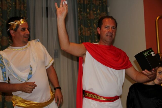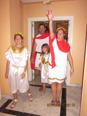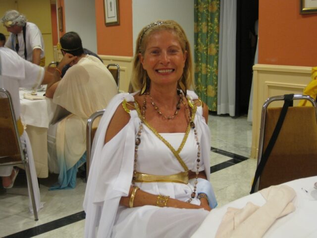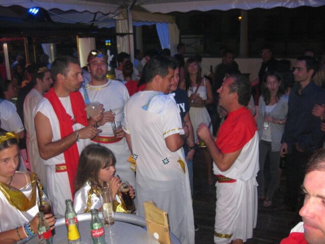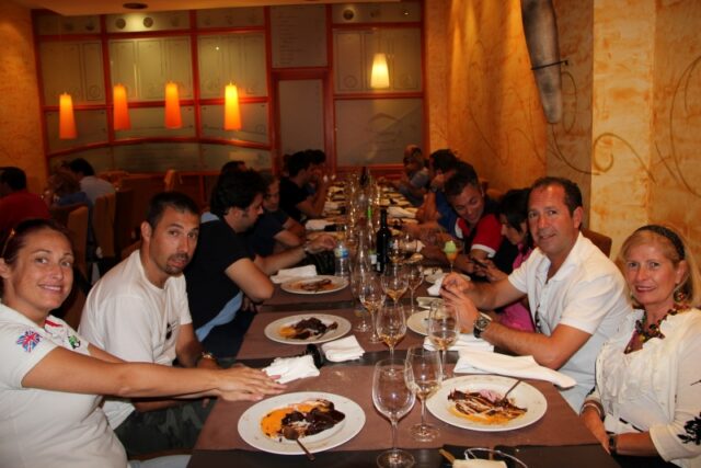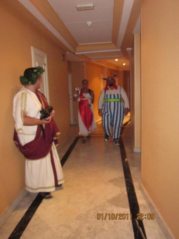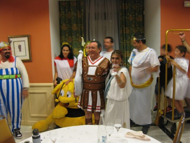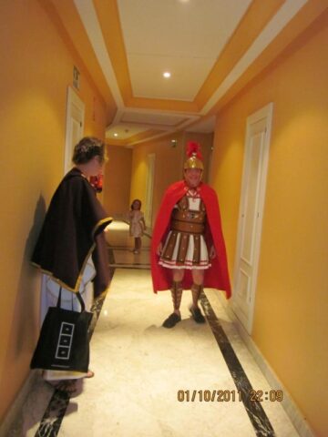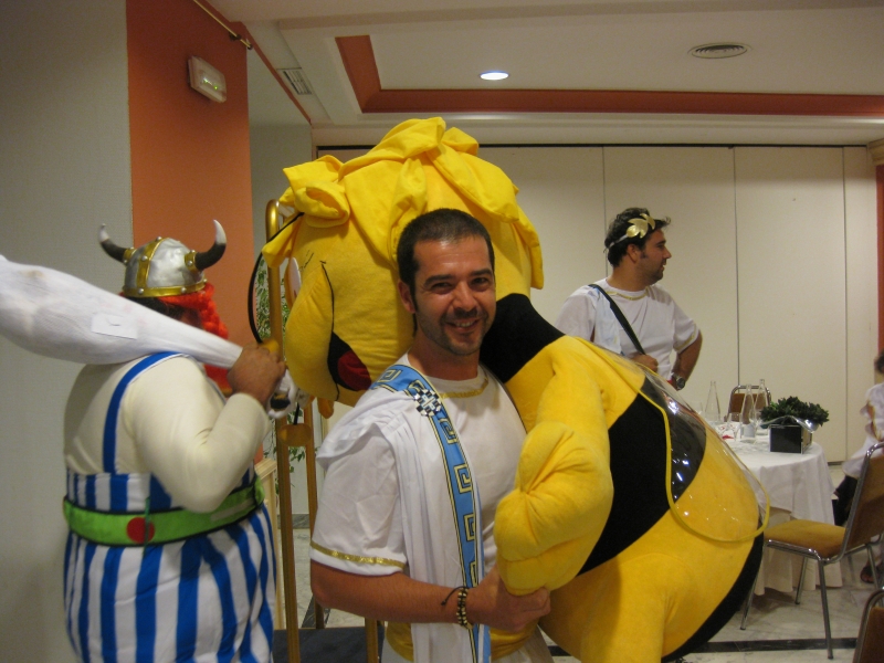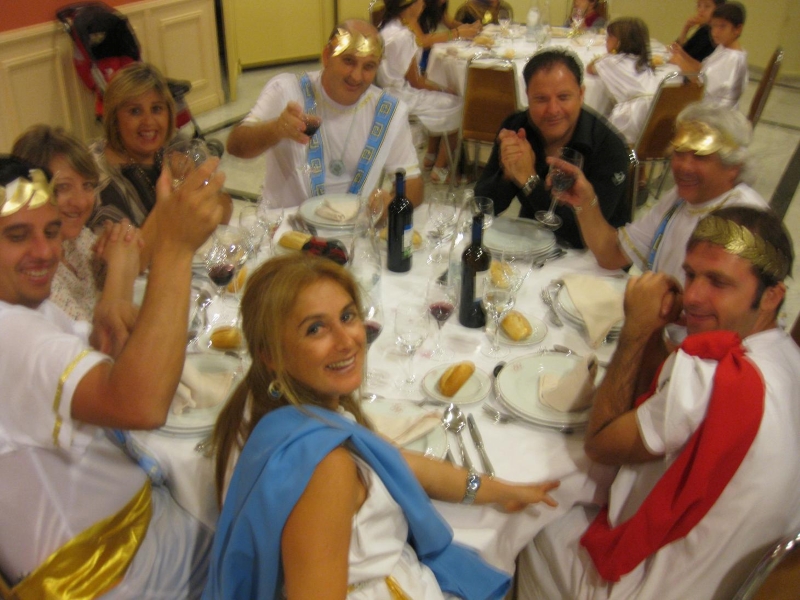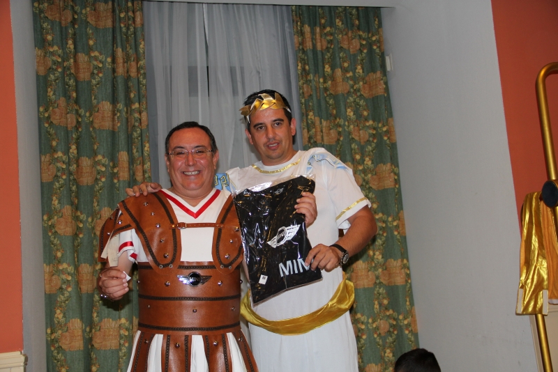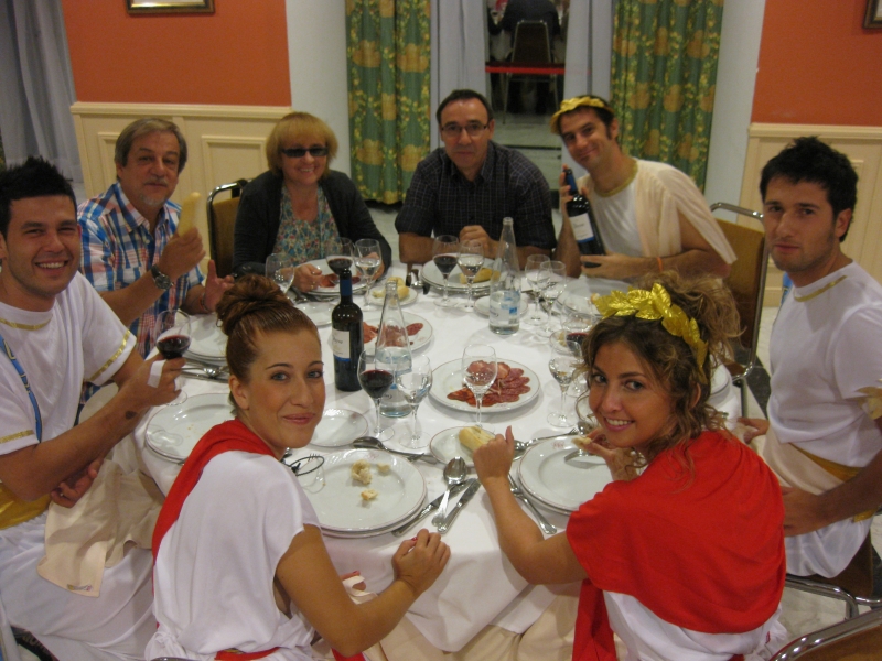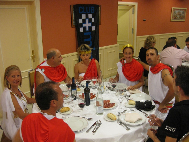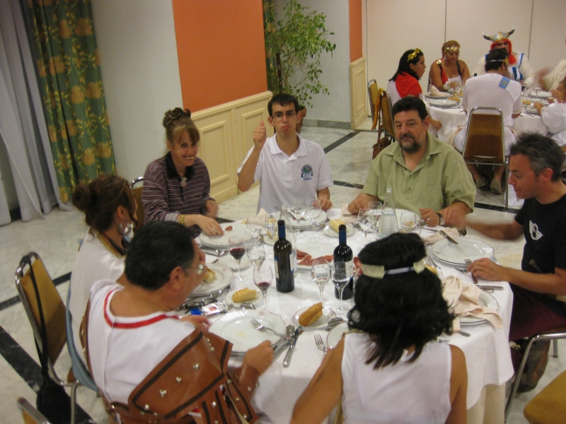 A las 22:00 cenamos en el mismo hotel, ataviados de diversas formas de la época romana. A los postres se celebró un sorteo de los diversos regalos donados por nuestros patrocinadores.